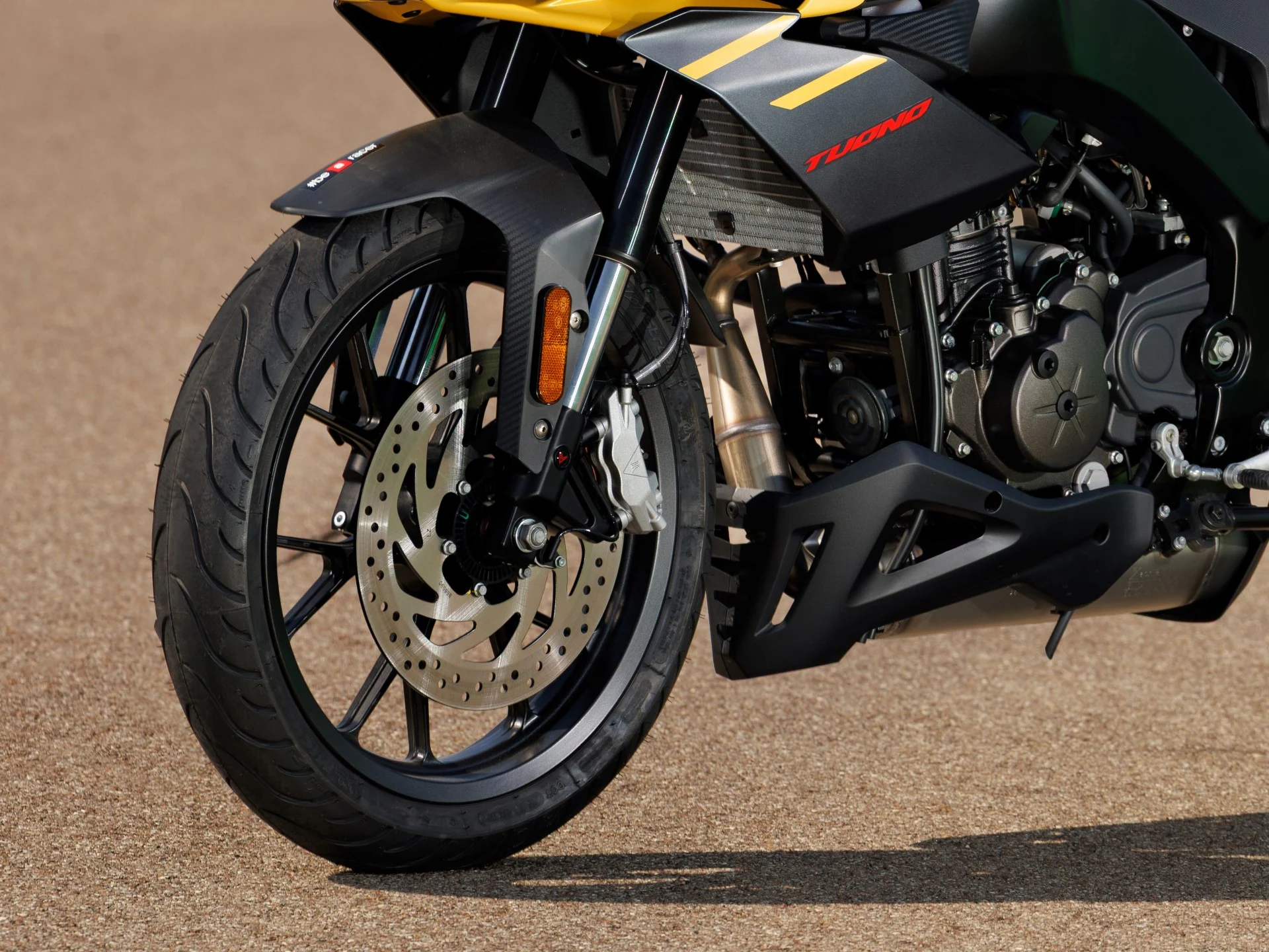 Η Aprilia Tuono 125 είναι η μοναδική sport street 125 κ.εκ. made in Italy που διαθέτει πλαίσιο αλουμινίου – για απόλυτη ακρίβεια οδήγησης και εξίσου εντυπωσιακή εμφάνιση. Αυτή η εκλεπτυσμένη λύση χρησιμεύει ως η τέλεια βάση για έναν επιθετικό, αεροδυναμικό σχεδιασμό που είναι σαφώς εμπνευσμένος από τους αγώνες. Το στυλ της αντλεί έμπνευση από την μεγαλύτερη αδελφή της, την Tuono 660, συμπεριλαμβανομένου του αδιαμφισβήτητου τριπλού μπροστινού προβολέα, ένα χαρακτηριστικό στοιχείου των πιο σπορ μοντέλων της Aprilia.