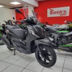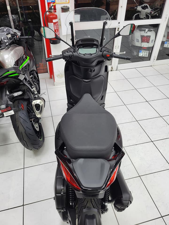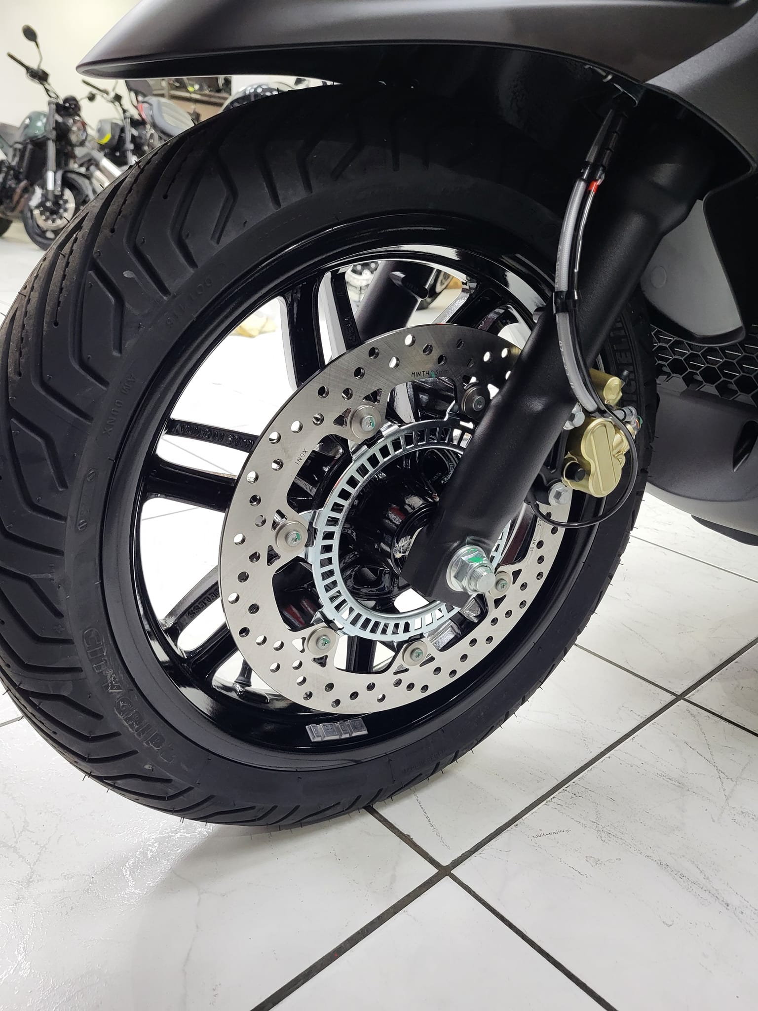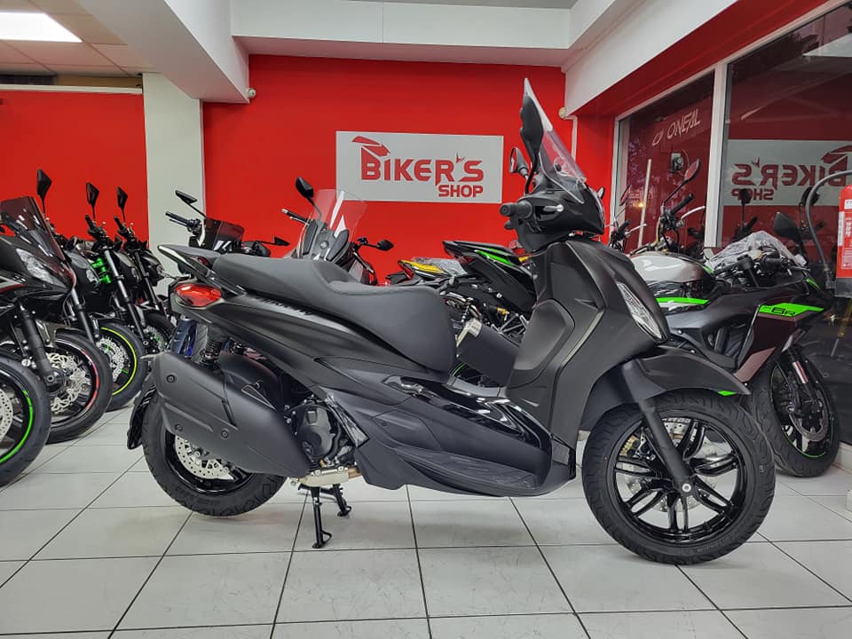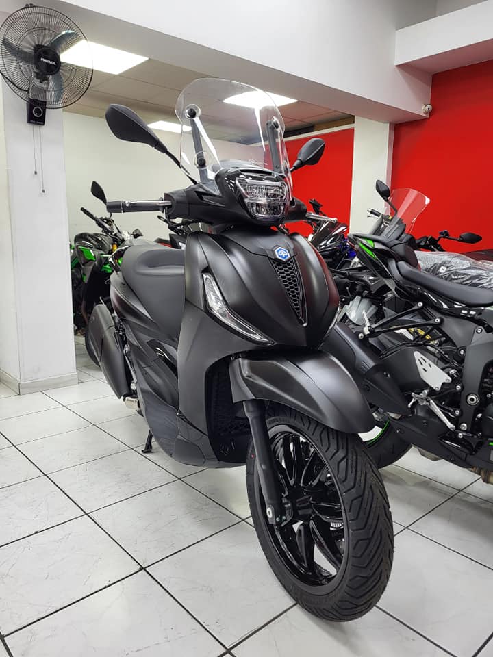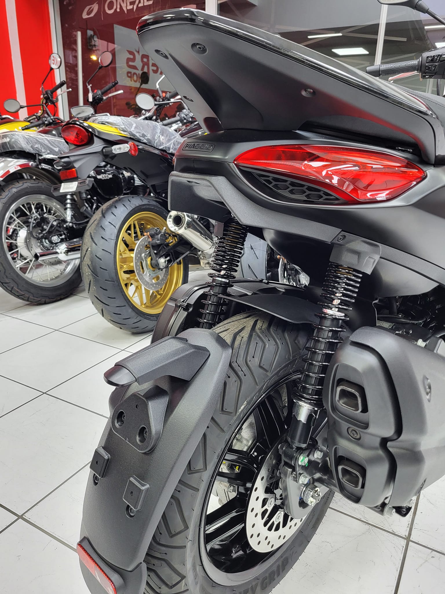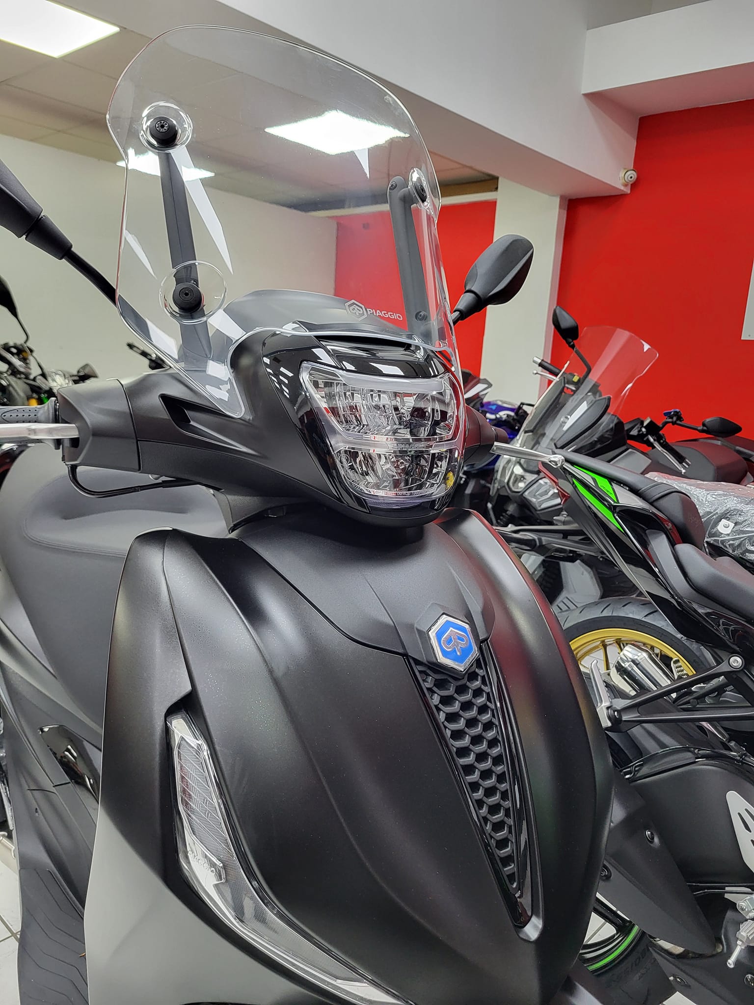 Το Piaggio Beverly S εντυπωσιάζει με τη σπορ ψυχή του: ματ φινίρισμα με εφέ γραφίτη διακρίνεται σε λεπτομέρειες όπως οι τροχοί, η πίσω χειρολαβή και τα πλαίσια του πίνακα οργάνων και του LED προβολέα, ενώ οι μπλε πινελιές στο λογότυπο «S», τον μπροστινό τροχό και την χαρακτηριστική μπροστινή γραβάτα τονίζουν τον επιθετικό χαρακτήρα. Το χαρακτηριστικό μπροστινό μέρος, με τον αεραγωγό σε σχήμα V και η κυψελοειδής γρίλια, μαζί με την κομψή ουρά και τις δίχρωμες ραφές της σέλας, ολοκληρώνουν τη σχεδίαση – δημιουργώντας τον τέλειο συνδυασμό ενός σπορ σκούτερ με μεγάλους τροχούς και ενός ισχυρού GT.