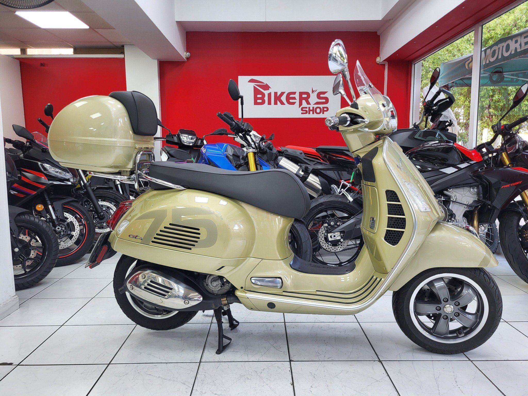 Πωλείται Piaggio Vespa GTS 300 Super Tech  75 Years Anniversary χρονολογίας 06/2022 σε κατάσταση καινούργιας με 6911 χιλιόμετρα μόνο. Συλλεκτικό επετειακή έκδοση εορτασμού των 75 χρονών της οικογένειας Vespa.